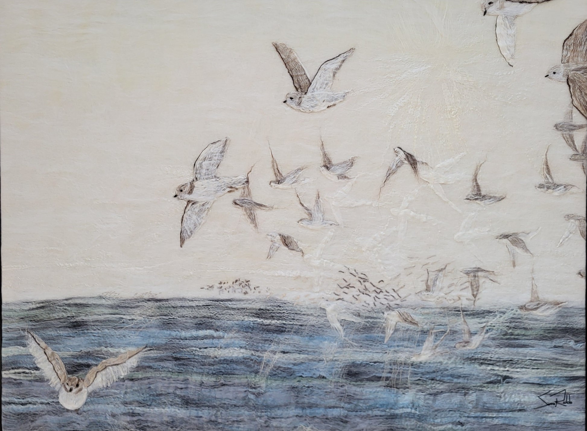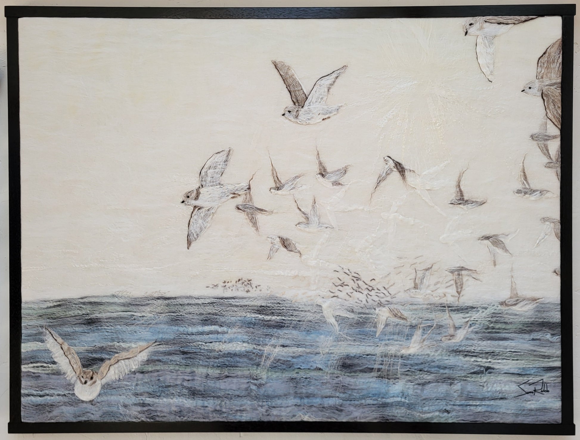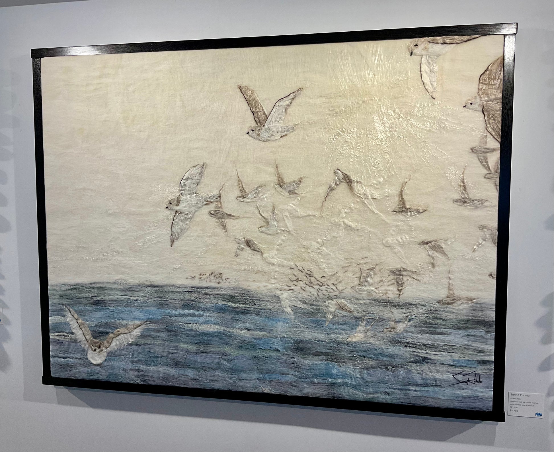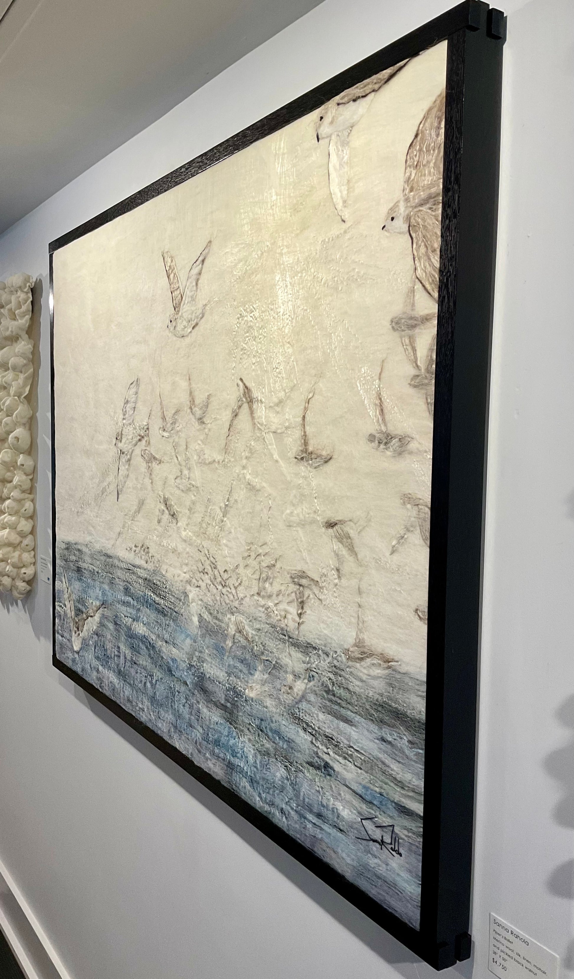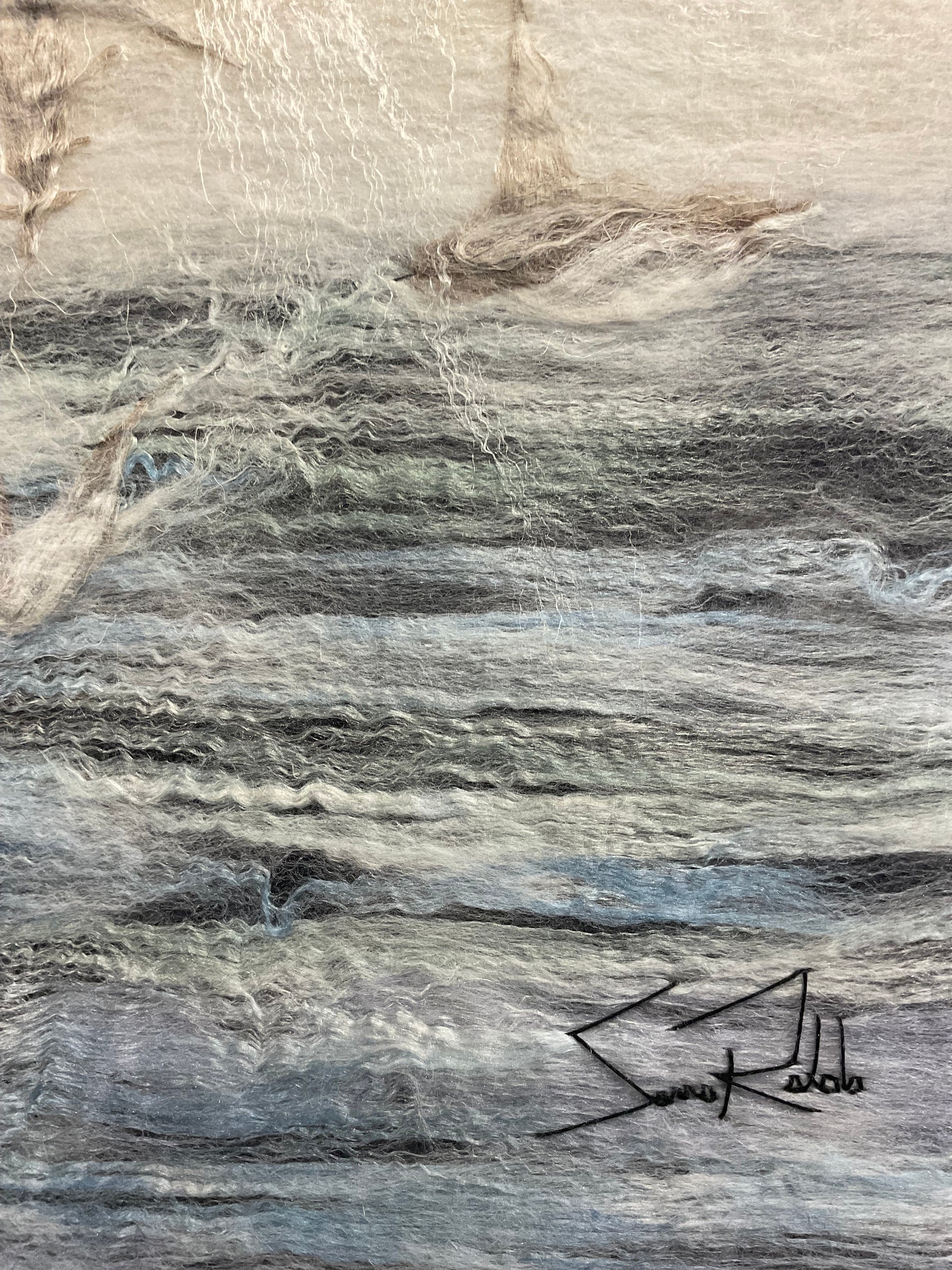 Created by Sanna Rahola using hand dyed merino wool, silk, linen and mohair within a bespoke pickled black frame created by Douglas Drdul.