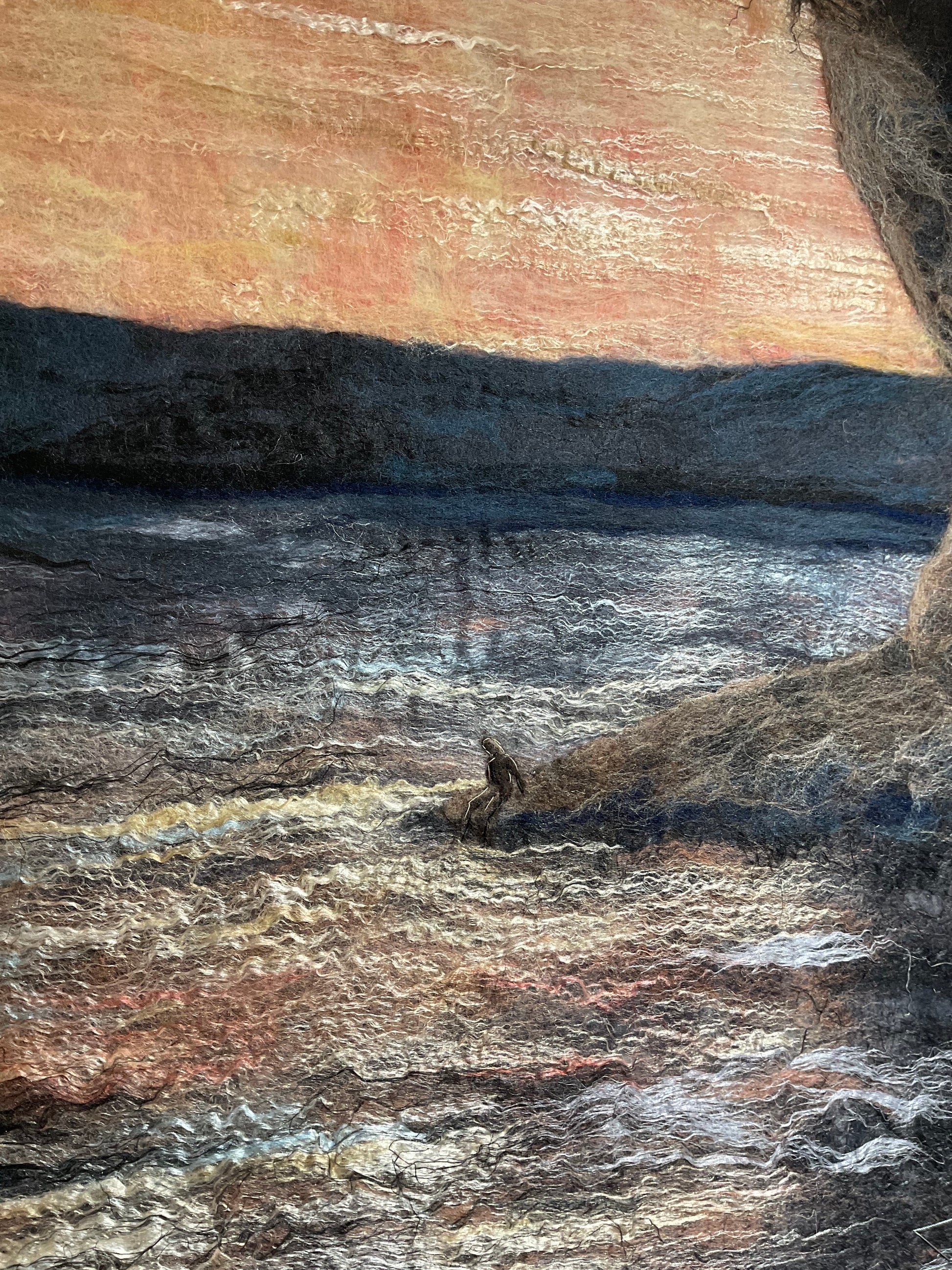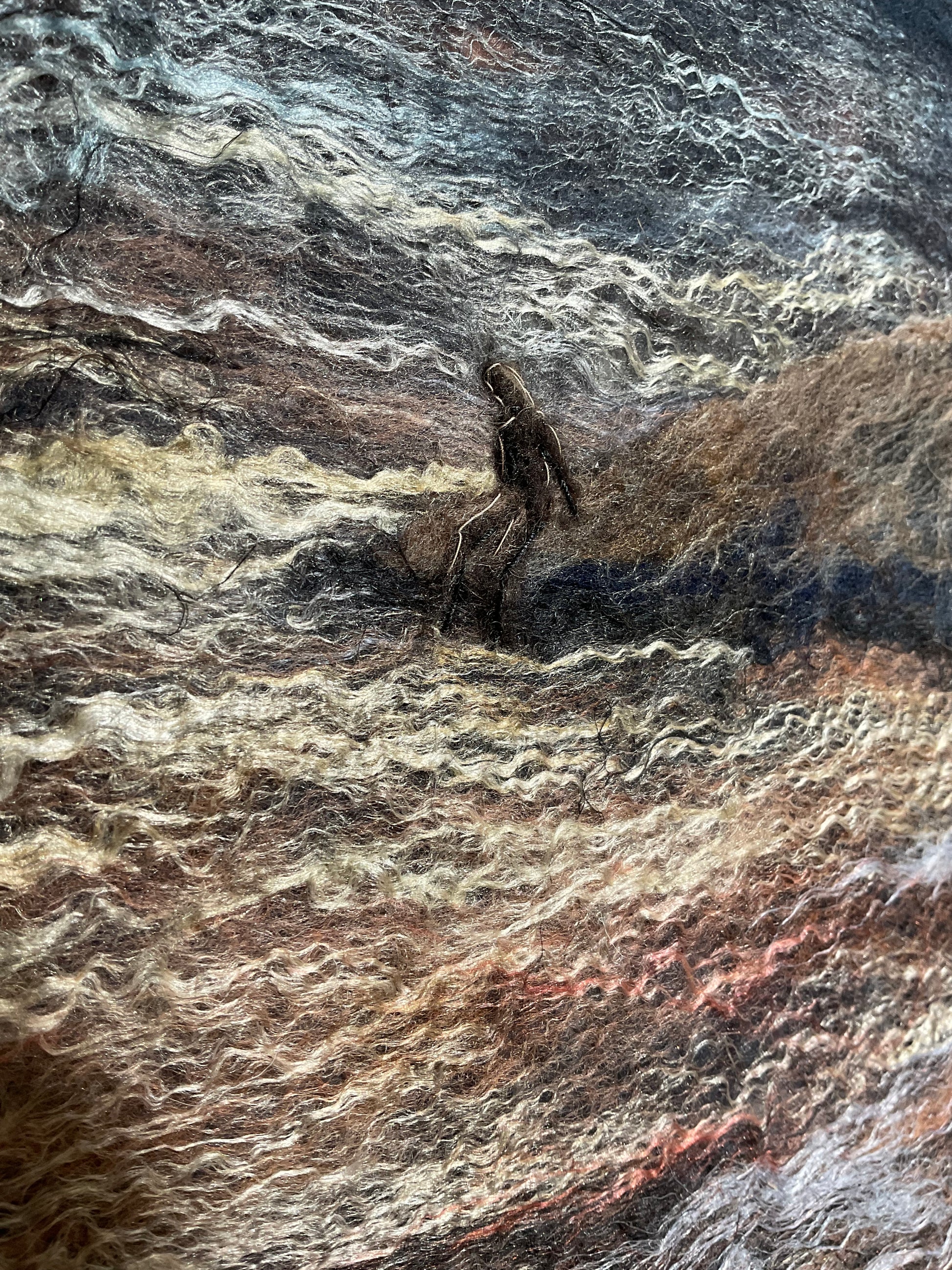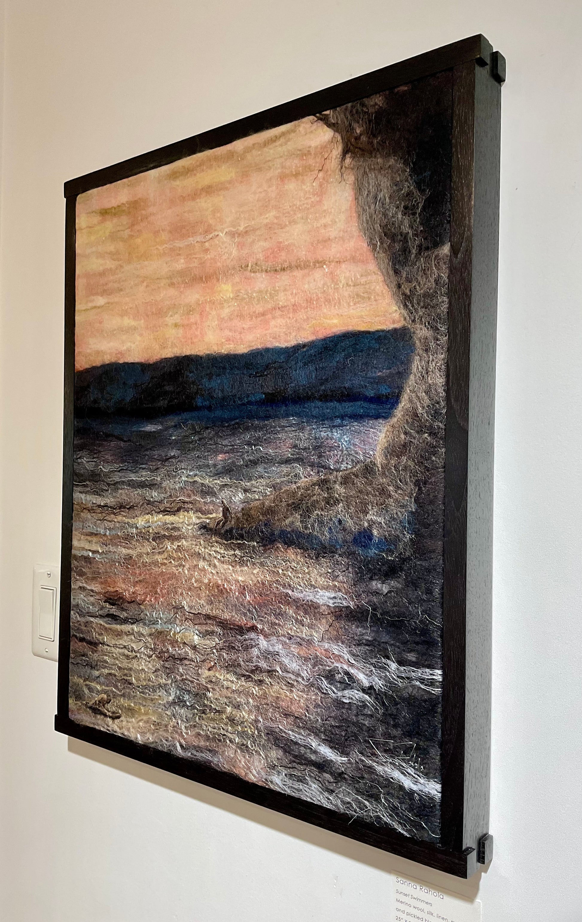Created by Sanna Rahola using merino wool, linen, silk, mohair inside a bespoke pickled black walnut frame created by Douglas Drdul.