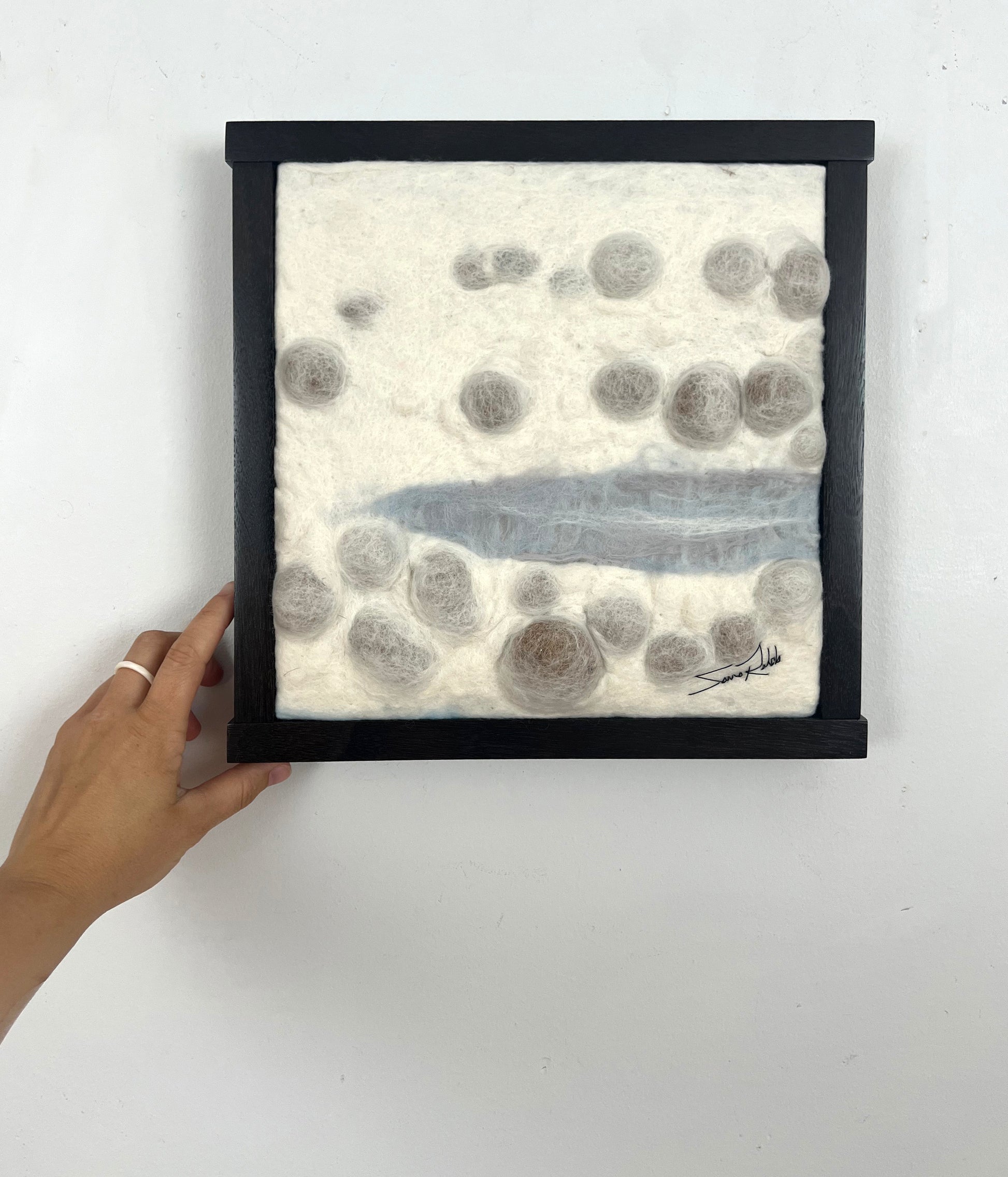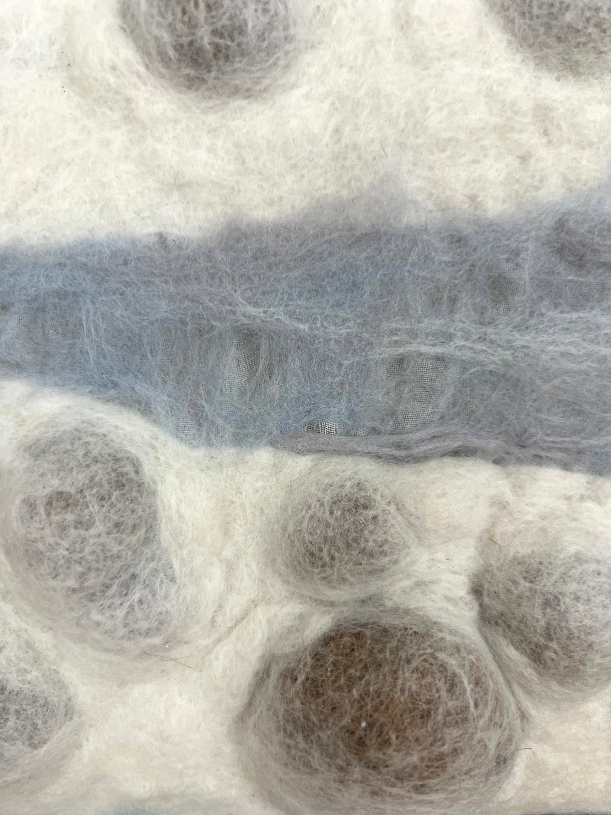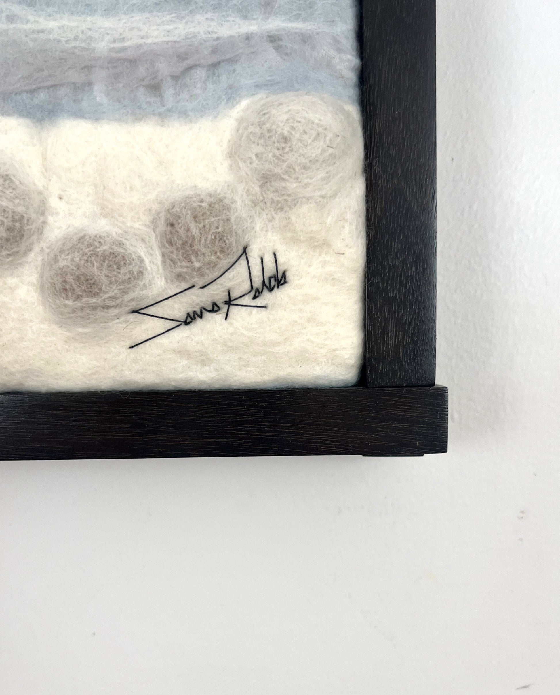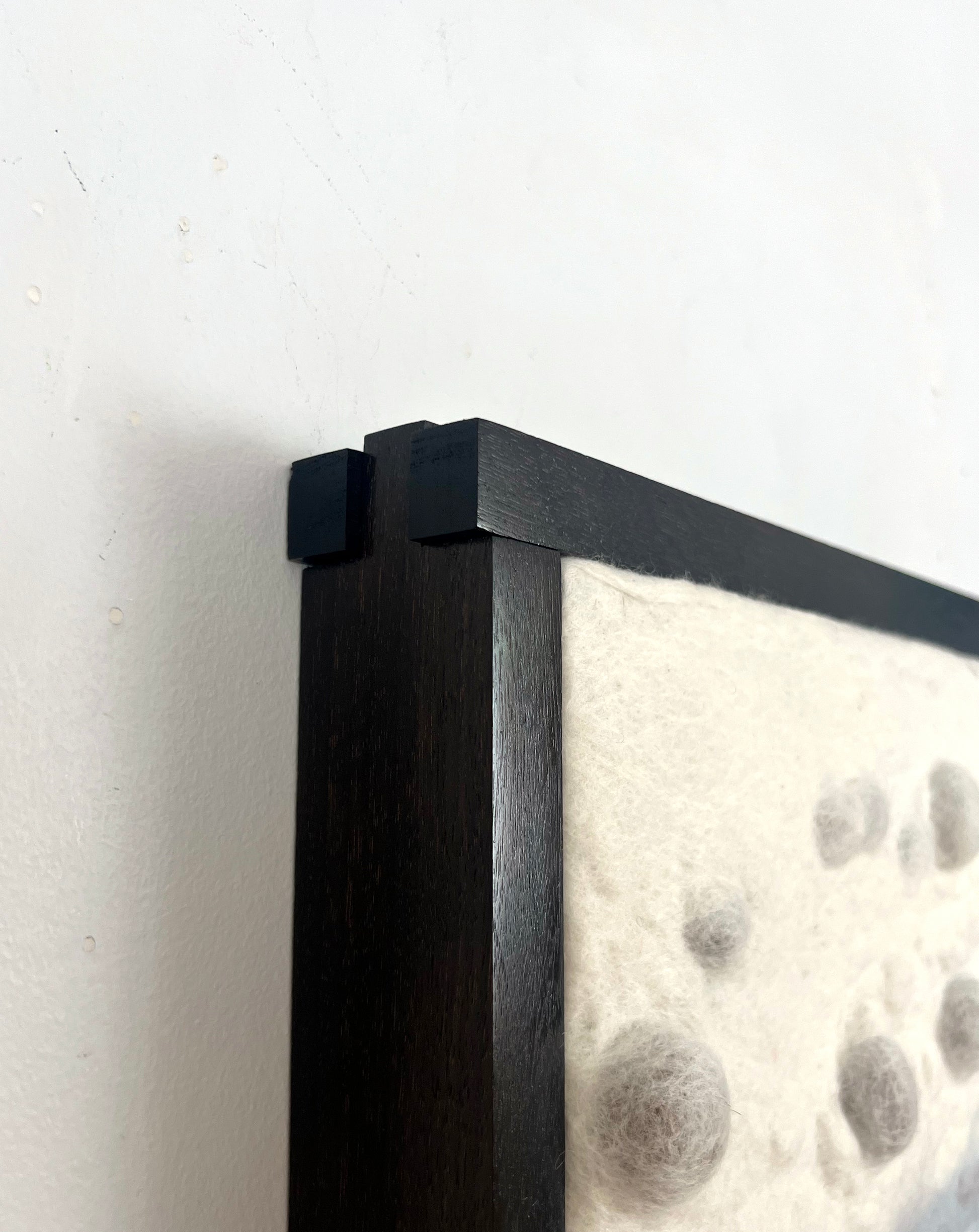 Merino wool, silk, linen, mohair, pickled black walnut frame
